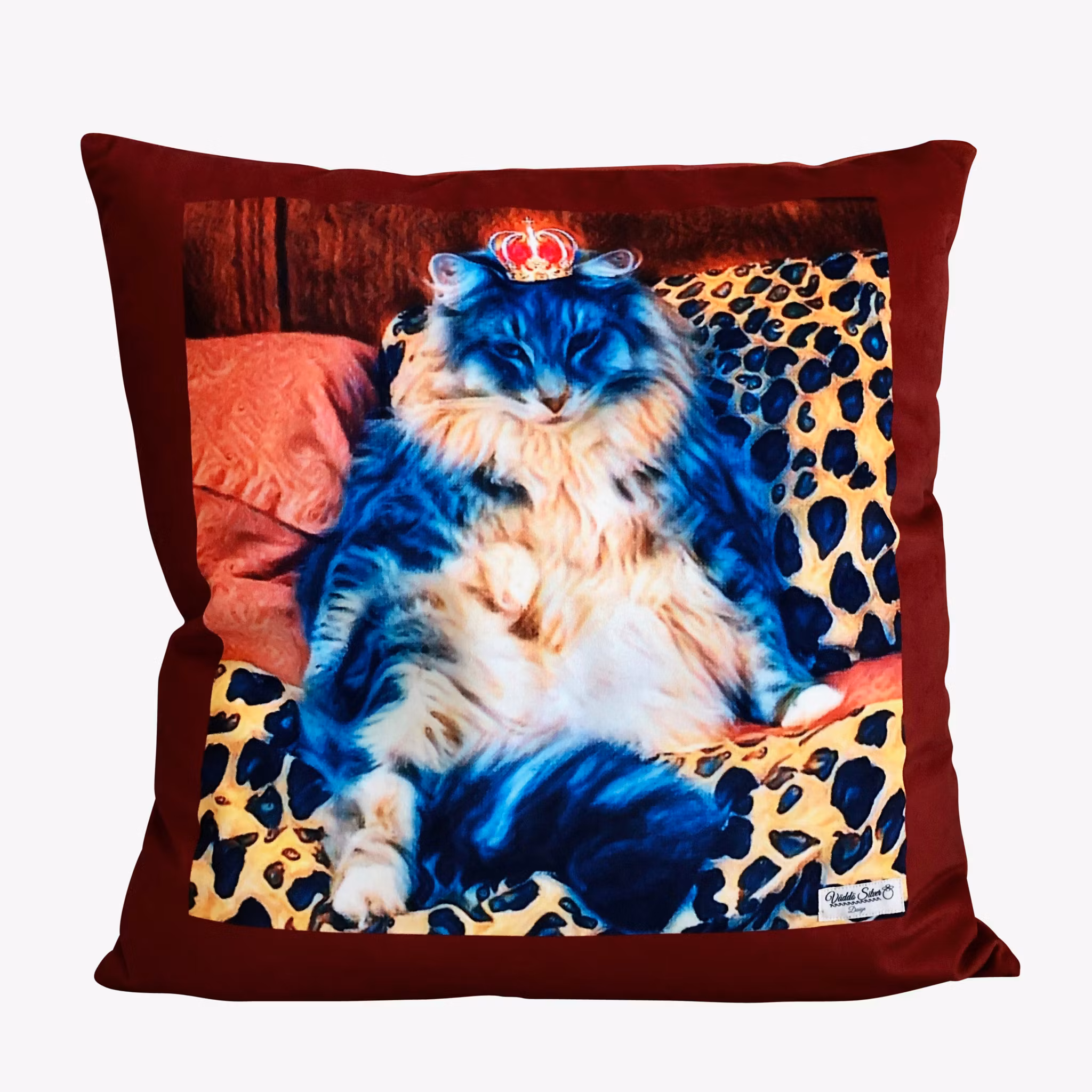 Kudde tillverkad i sammetstyg med innerkudde av syntet. Kudden har dragkedja i botten, storleken är 50x50 cm. Motivet är tryckt på båda sidorMaskintvättas